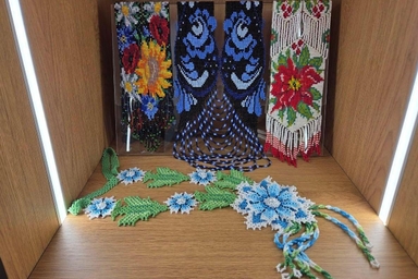 В выставочном зале музея представлены работы мастеров Белгородской области, выполненные в технике бисерного рукоделия. Изящные изделия Ирины Черных, Анны Сергиенко, Людмилы Акиньшиной и Татьяны Курганской наполнены яркими цветами, формами и традиционными орнаментами.